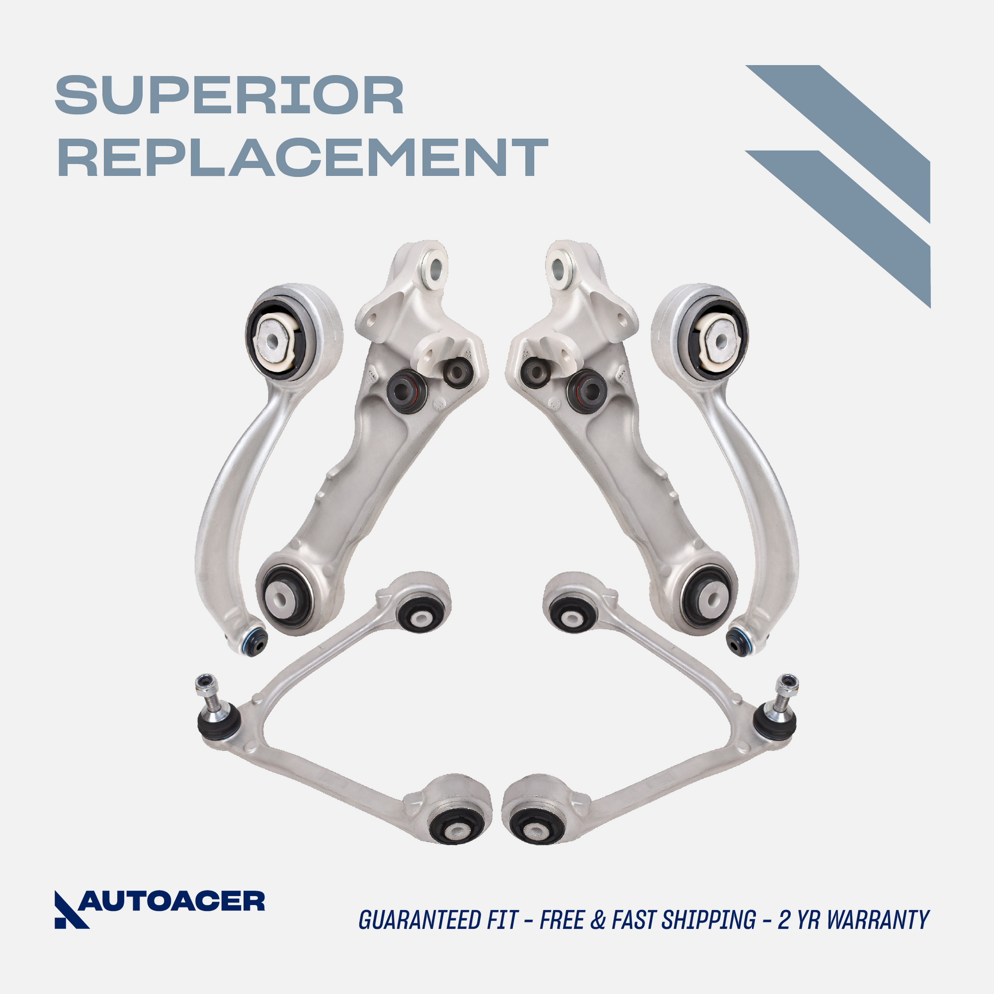This AUTOACER 6-Piece Front Upper & Lower Control Arm Kit is an excellent alternative to repair the original control arms and front suspension to new heights. Engineered for durability and peak performance, this kit enhances your JAGUAR / DAILMER for both form and function.